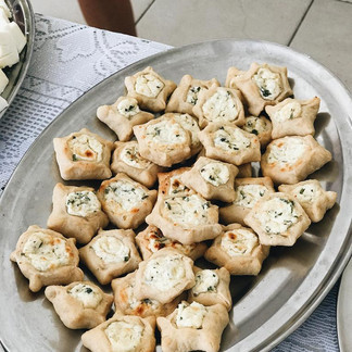 Dentre os pratos, coalhada, berinjela baba ganoush, Homus, queijos, esfihas abertas e fechadas, etc.